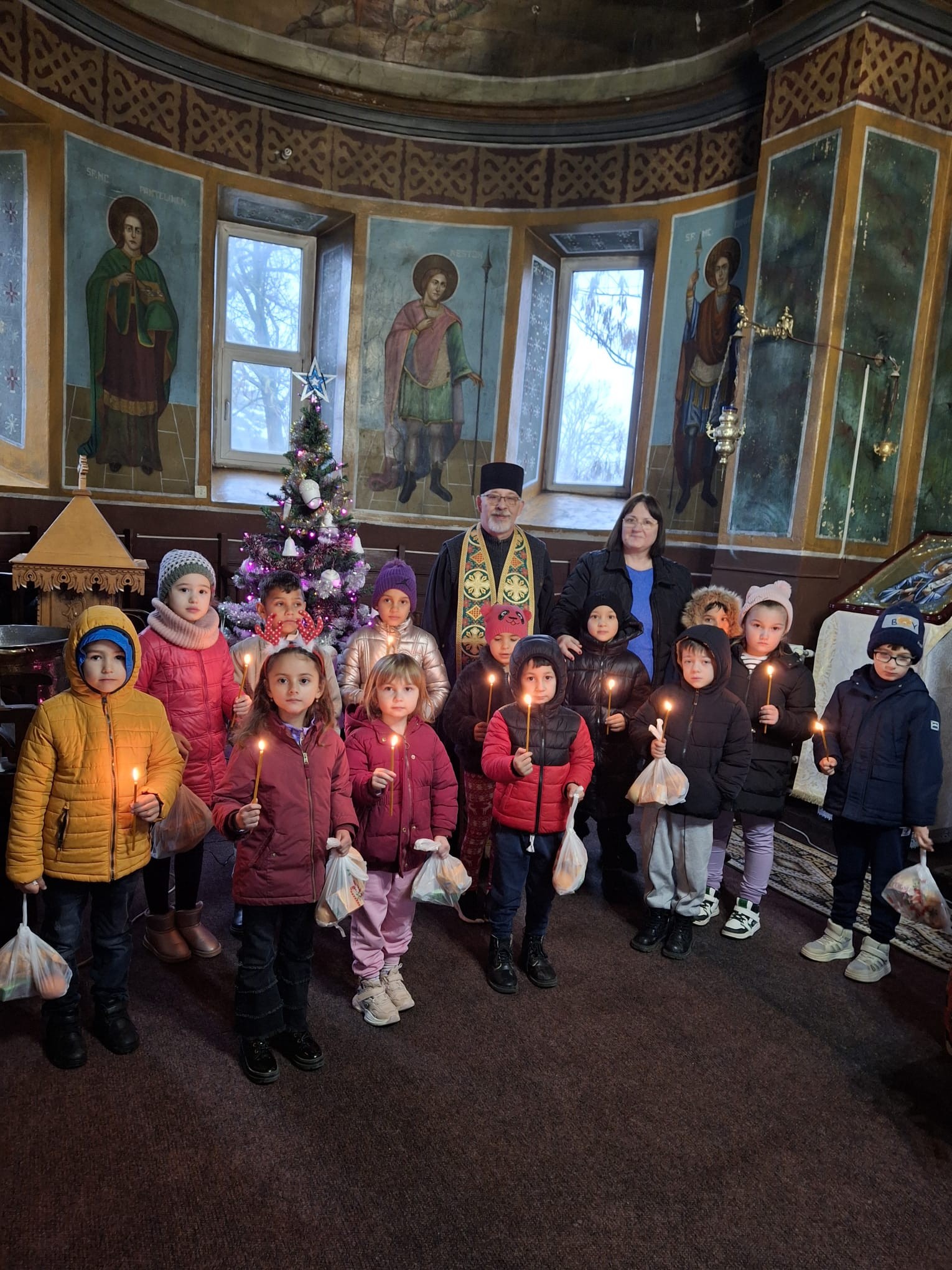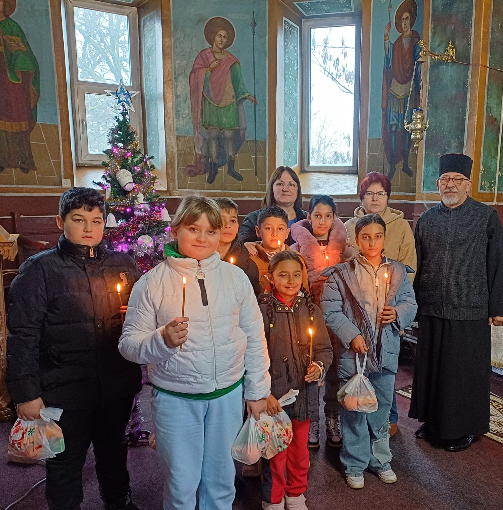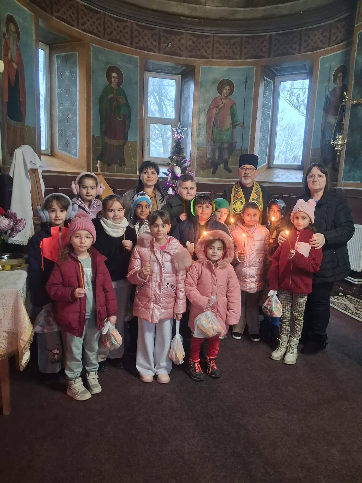 Copiii au fost întâmpinați cu multă bucurie de către preotul paroh, care le-a oferit nu doar cuvinte de învățătură, ci și mici daruri dulci.