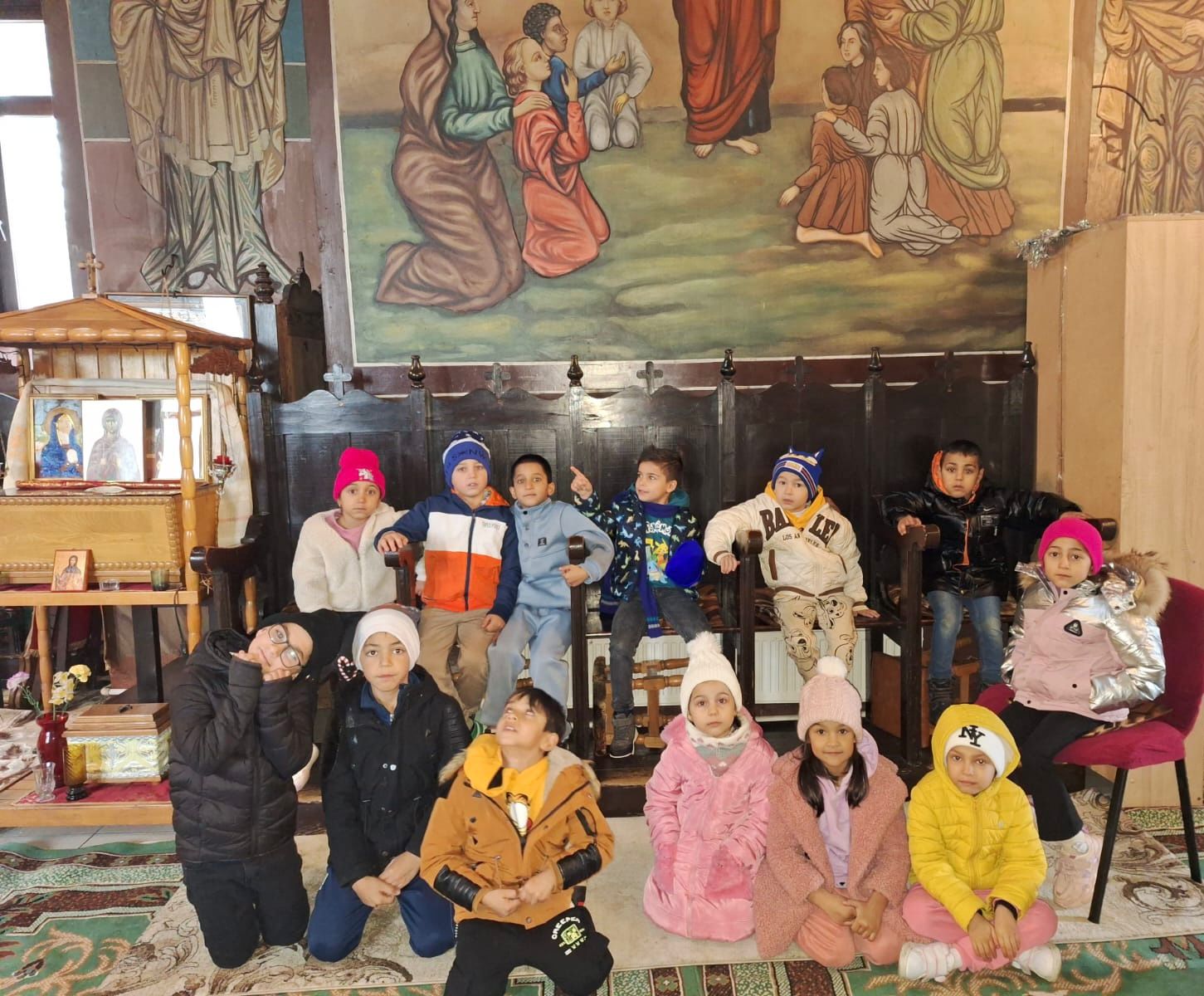 Au fost întâmpinați de părintele Braică Dumitru, preotul paroh, care le-a vorbit copiilor despre viața perioada în care ne aflăm, a bucuriei, a postului Nașterii Domnului Hristos, despre importanța credinței și a rugăciunii în viața de zi cu zi.